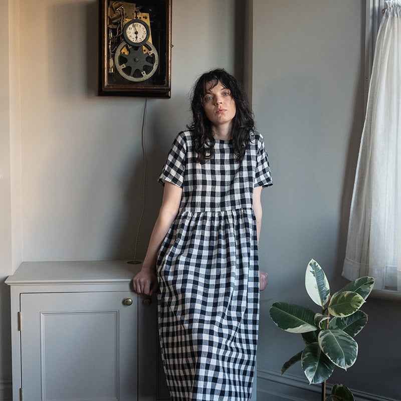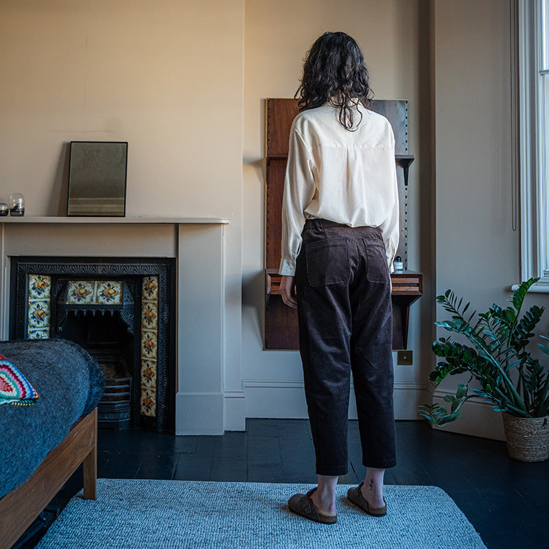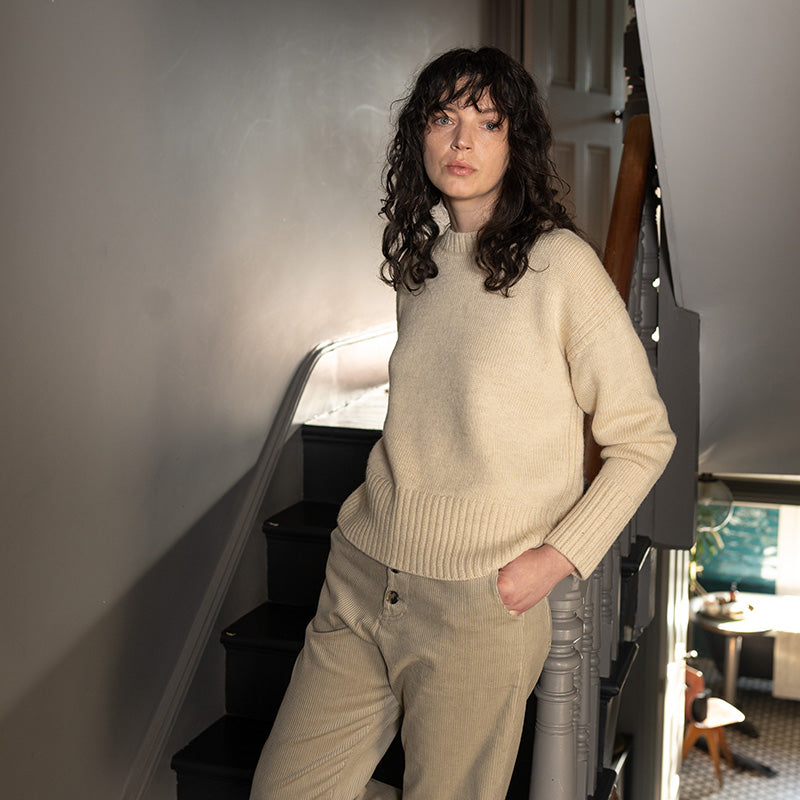 Everything is made in East London in small batches to minimise waste. We use sustainable materials, either natural fabrics or surplus fabric from the luxury fashion industry that would otherwise go to landfill. Even our knitwear is made locally from fully traceable British wool.