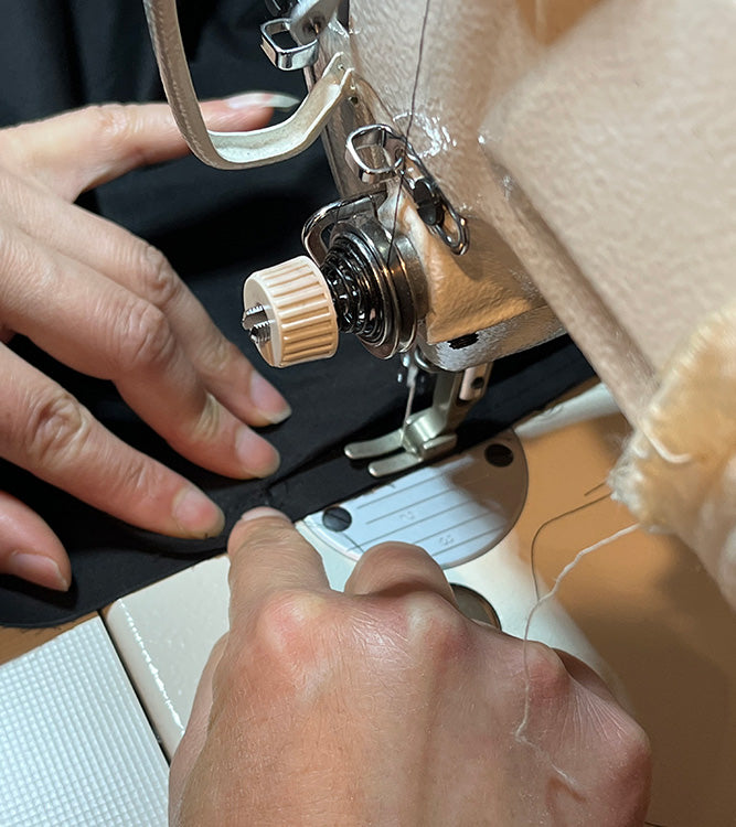 We make small batches to minimise waste. Rather than develop a new collection each season, we have a continuous and evolving collection. We use surplus fabric from the luxury fashion industry that would otherwise go to landfill to reduce our environmental impact.